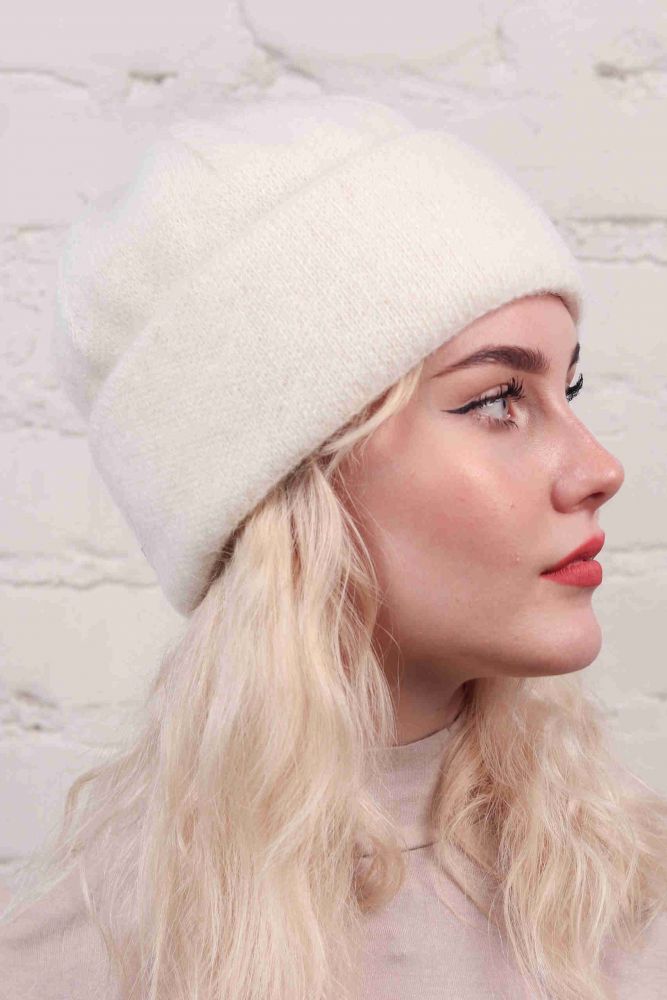 Шапка однотонная белая из Исландской шерсти 28200-23