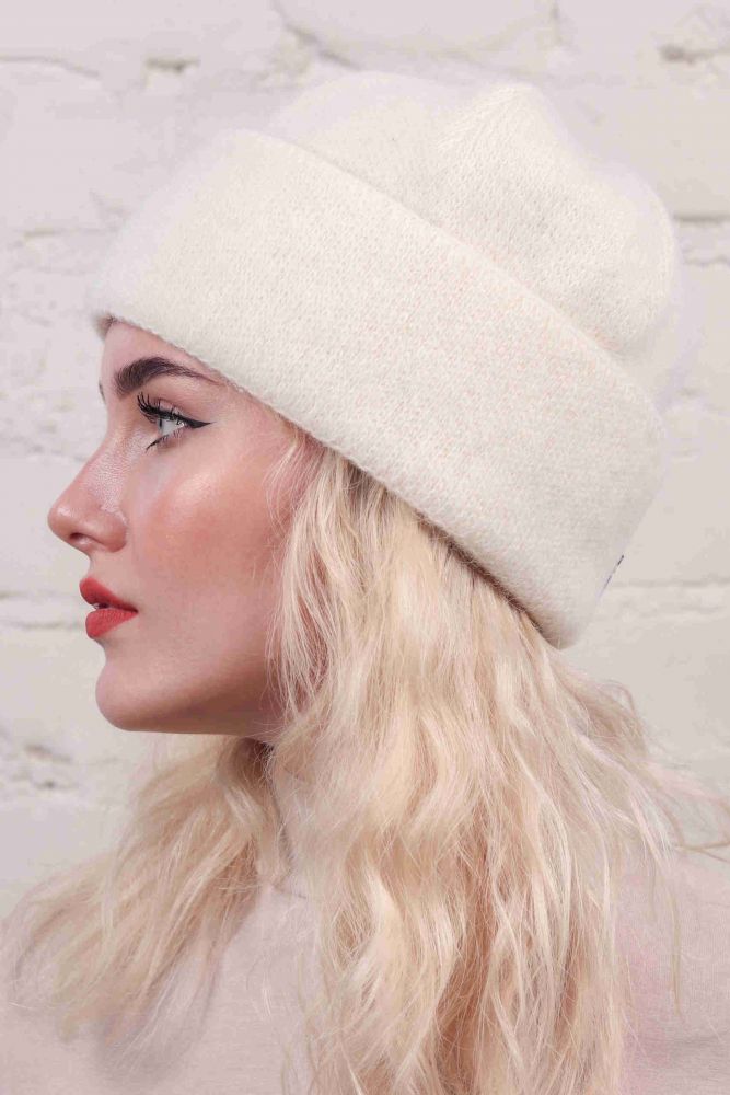 Шапка однотонная белая из Исландской шерсти 28200-23